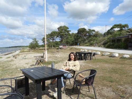 Frukosten serveras utomhus och i utrymmet med tak över, men även på flera ställen, bara så det inte blir trängsel. Selina hämtade vår frukost till rummet, det smakade fint. Efter att ha besökt apoteket drog vi söderut igen, den här gången utmed kustvägen.