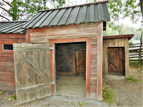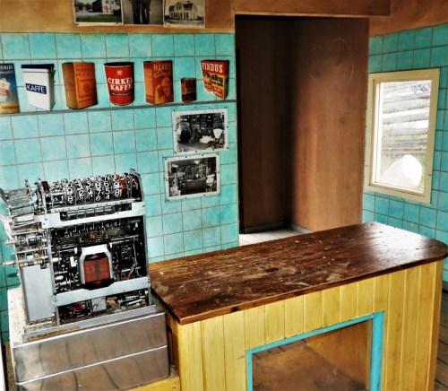 Den har både ingång för kunder och för personalen och en rejäl kassaapparat.