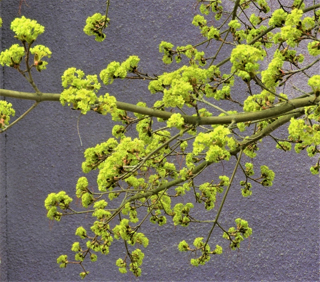 Lönnarna fyller sina sina grenkronor med lysande blomträngsel i guldgrönt. Och fort går det, om bara ett par dagar är marken täckt av blommornas guldstoft..