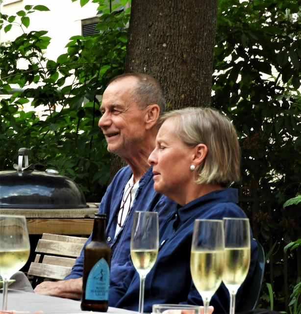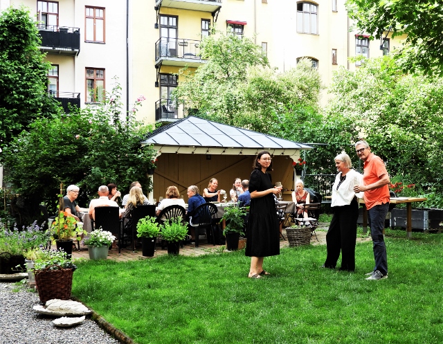 Här är kompisar och grannar samlade att fira Karin. Selina, Karin och Gösta står fortfarande.