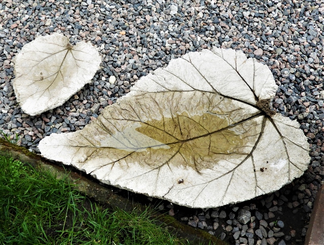 Fågelbad av betong, som Karin och en granne tillverkat på gården för ett par veckor sedan.