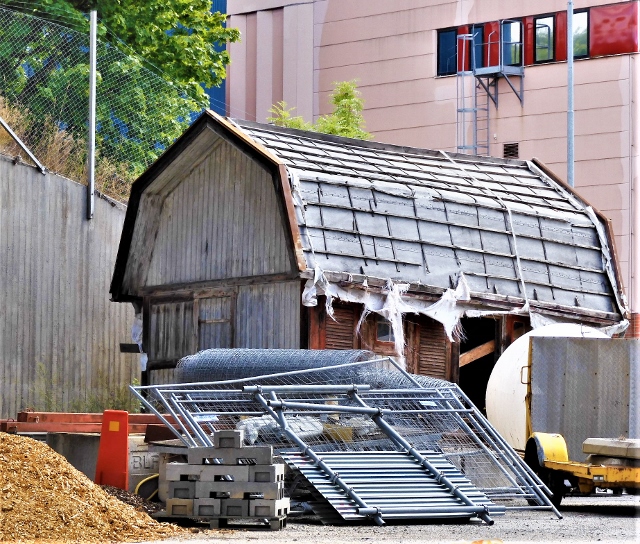 Jag har länge kollat ett gammalt (ut-) hus man flyttat från en tomt i Folkparksområdet till kommunens soptipp under Mälarvägsbron. Det står bland överblivet material på samma ställe som jag för några år sedan upptäckte att skulpturen Afrodites födelse av Amundin, låg i småbitar.