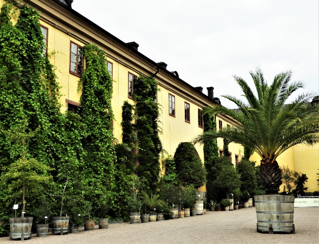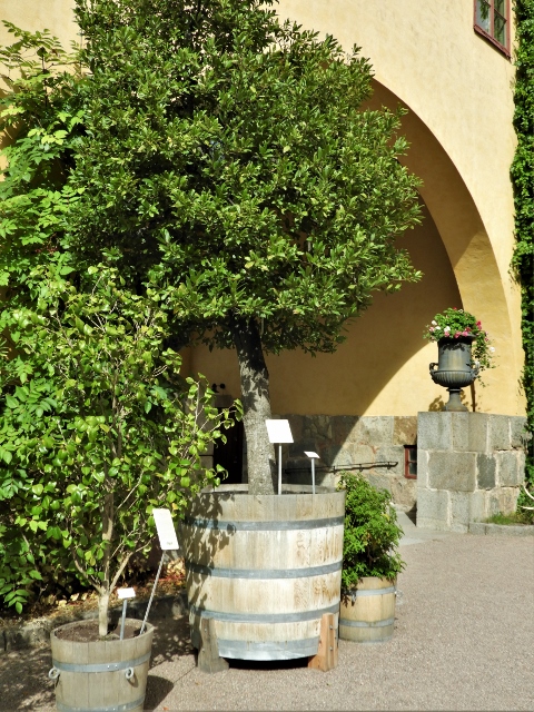 Linneanums huskroppar bildar en innergård där man ställt ut de stora krukorna med träd och växter som på vintern får skydd inne i orangeriet. Flera av dem är hundra år och mer.