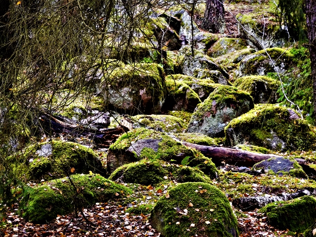 Du kan få den mörka höga skogen att skimra, jag har alltid tyckt den skogen är lite läskig men här ser den riktigt gemytlig ut.