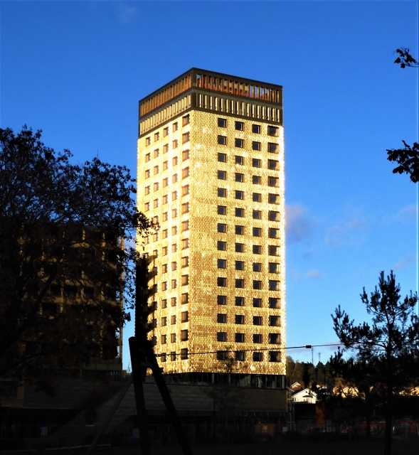Nu har jag fått ett motiv utanför fönstret som förändrar sig med väderlek och tid. Så är det med det mesta som står utomhus men ytorna på tornet gör att det blir så mycket tydligare.