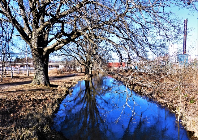 Jag far vidare till parkeringen vid kommunens förråd och ser att gångvägen utmed ån är isfri. Bakom förrådets nät ser jag att man börjat åtgärda det gamla huset från folkparksområdet, det började falla sönder och räddningen kom nog i sista minuten,