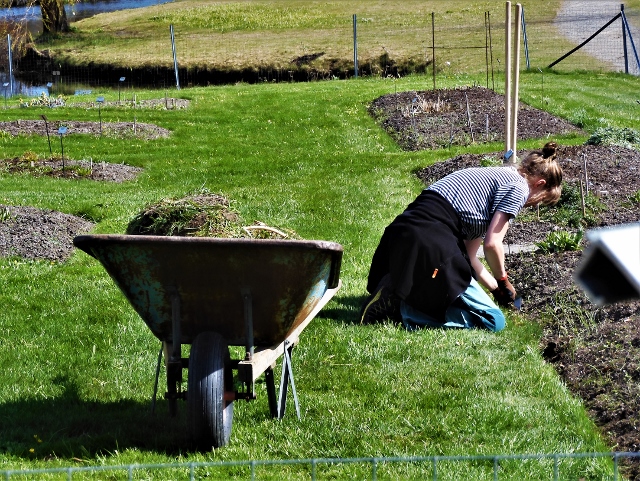 Vårlök, nunneört och vitsippor gav marken färg utanför rabatterna, där inte allt hunnit komma upp än.