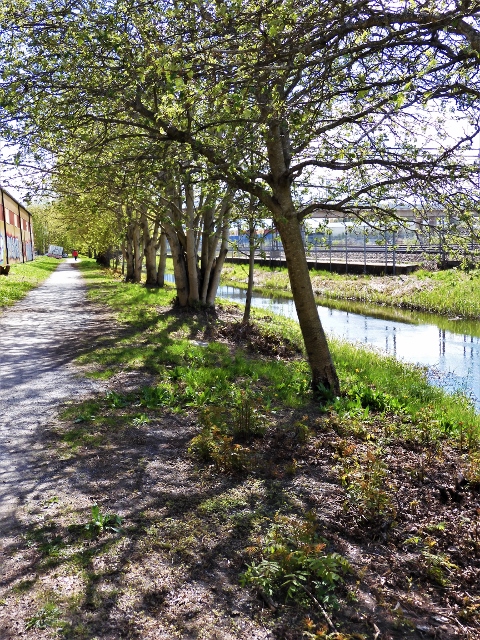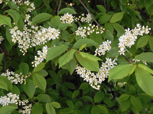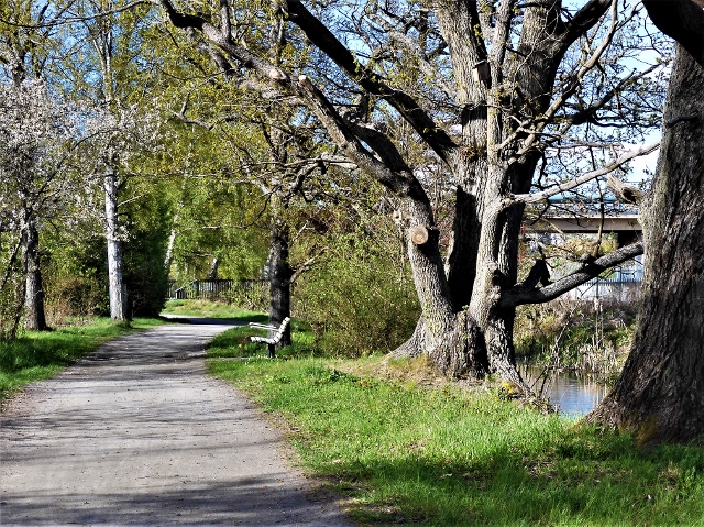 Nu slår allting ut, ett lätt regn hjälper till och luften kring innergårdarna är vit av blommande körsbär, hägg och häggmispel. Solen gassar och jag tar den enklaste vägen, den går utför och jag hamnar vid ån. Det är något med vatten som lockar, där blir aldrig riktigt torrt även om all annan grönska slokar av torka. Där finns också lite rester kvar av den vilda växtligheten och man lämnar asfalten en stund.