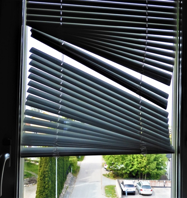 Hej Arne och tack för omtanken. Sen är det väl så att det inte finns några genvägar att få ett snöre att passera lamellerna och hela mekanismen upptill och ut genom ett smalt rör så jag når det på insidan. Men samtidigt, persiennsnöret är en bagatell och vad är stort och vad är smått? De nya gröna löven eller Putins galna förstörelse av Ukraina?