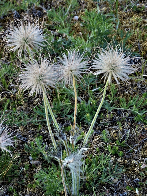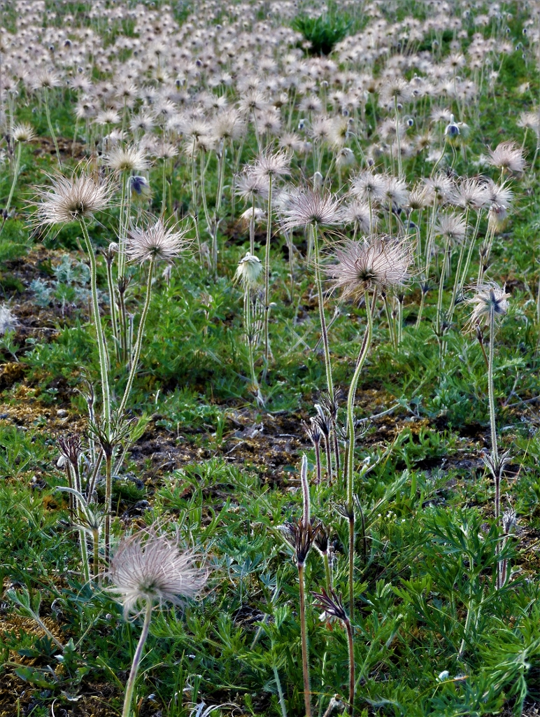 Fältsipporna (Pulsatilla pratensis) är synligast som fröställningar.