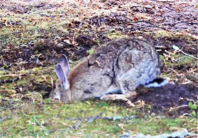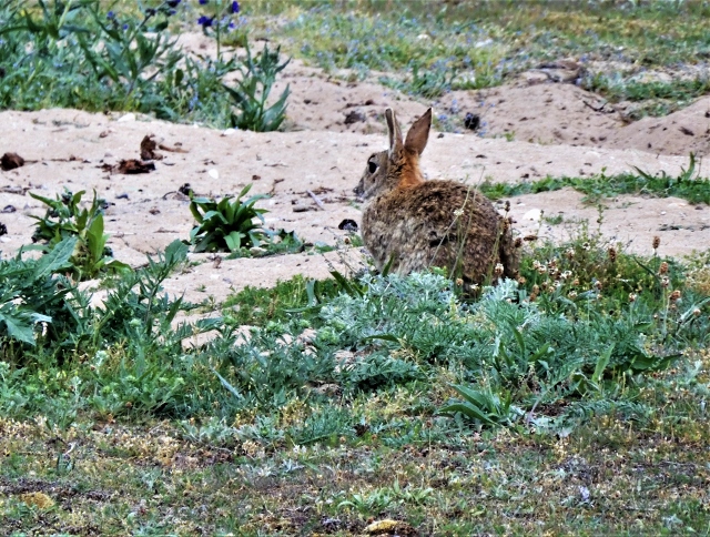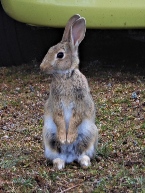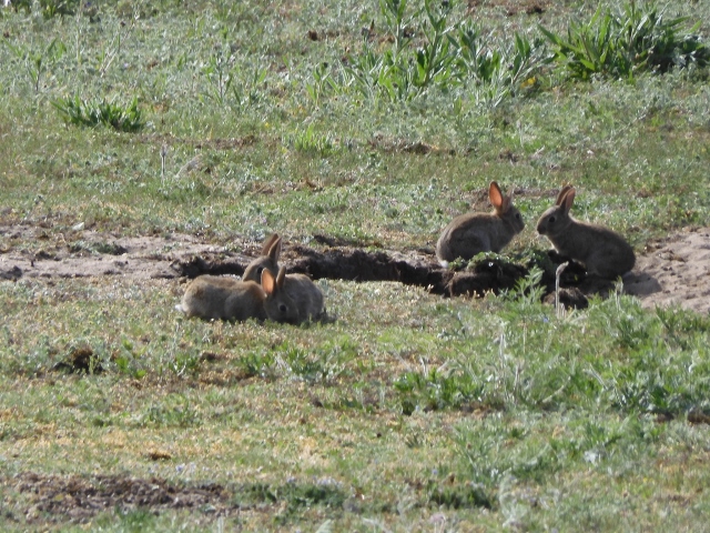 Vår tomt ligger på den så kallade Litorinavallen, en vall av sjösand som kastats upp runt de de höga delar av Gotland som stack upp över vattnet för ett antal tusen år sedan. Den vallen har flera meter ner till kalkhällen och här vill rabbisarna vara. När vi kom hit för för mer än 50 år sedan, fanns rabbisarna men det är först på senare år de kommit oss riktigt nära, nu bor de under huset, friggeboden och förrådet och de äter upp allt grönt som växer (sånär som tistlar osv.) och de har förvandlat vår grönskande oas till något som liknar öken.