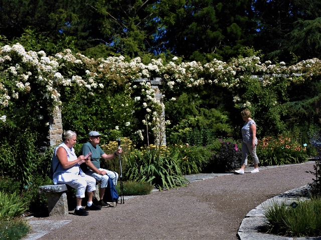 De tidiga buskrosorna var inte helt utblommade. Mängder av turister försökte fånga in prakten och hitta vinklar som gav rättvisa åt mångfalden av blommande rosor. Jag har aldrig tidigare sett en sådan storslagen blomning, den gjorde mig andlös..