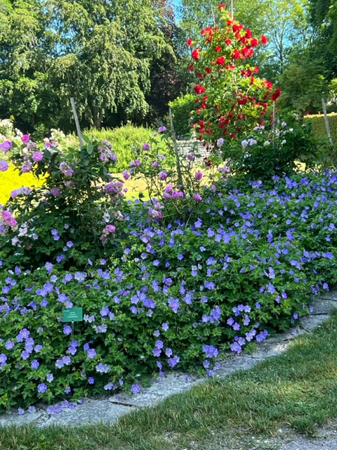 Rosorna skymta på långt håll men innan dess låg en blå plantering av nävor som en sjö i gräset.