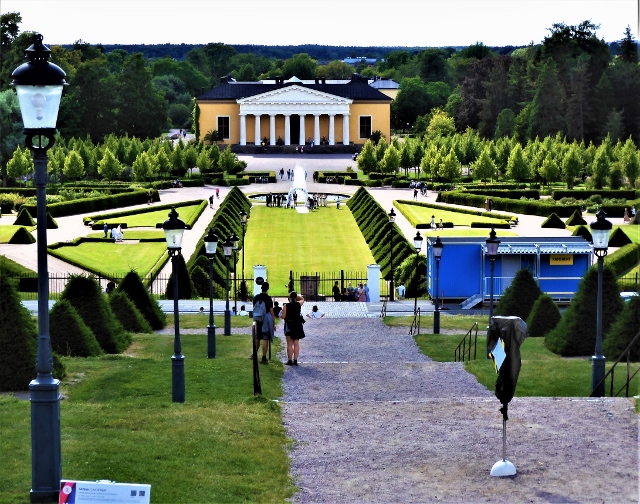 Ute på slottsbacken syns slottets grannar bättre. Här västerut den pampiga paradvägen från slottet till botaniska trädgården och Orangeriet