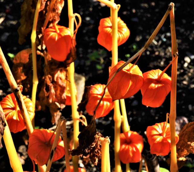 Kinesiska lyktor (Physalis alkekengi var. franchetii) ger dagens sista färgglädje.