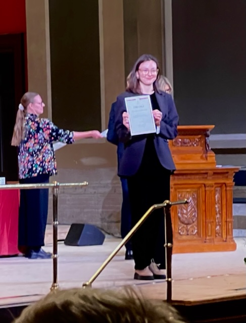 Och Selina visar upp sitt diplom. Jag räknade till fem damer som knixade till och neg för diplomutdelaren.