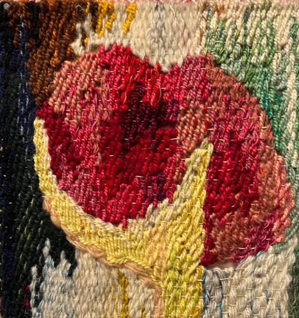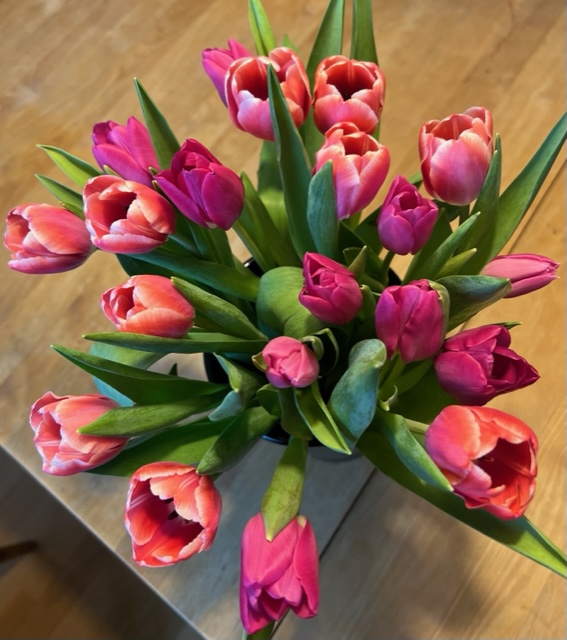 Grandios vy av himlen över huset som jag inte minns vad det heter. Magnifik tulpanbukett och väven (som jag förstår du har komponerat) så helt underbar. Jag har faktiskt ingen bok av Mossberg. Var som hastigast inne och googlade och fann att han har varit enormt produktiv. Skall fördjupa mig i hans produktion och se till att skaffa det som intresserar mig mest. Tack för ett vackert och informativt inlägg.