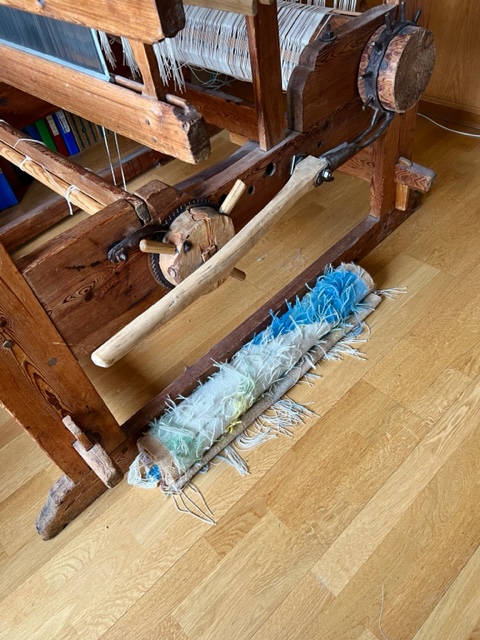 Den nedklippta väven viker jag ihop och lägger undan och den får ligga till sig ett bra tag utan att granskas. Det som franska vävare delar upp i olika hanteringar får jag klara ensam men jag behöver tid att glömma min roll som vävare för att se med fruntimmersögat på alla trådar som ska fästas och hur jag ska göra med baksidan.