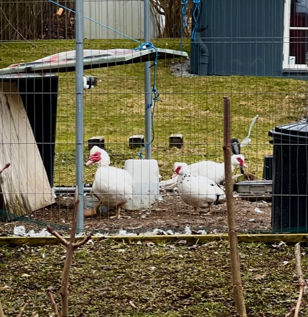 Ankorna på grannens tomt går omkring på torr mark, sitter inte bara och sover på snön.