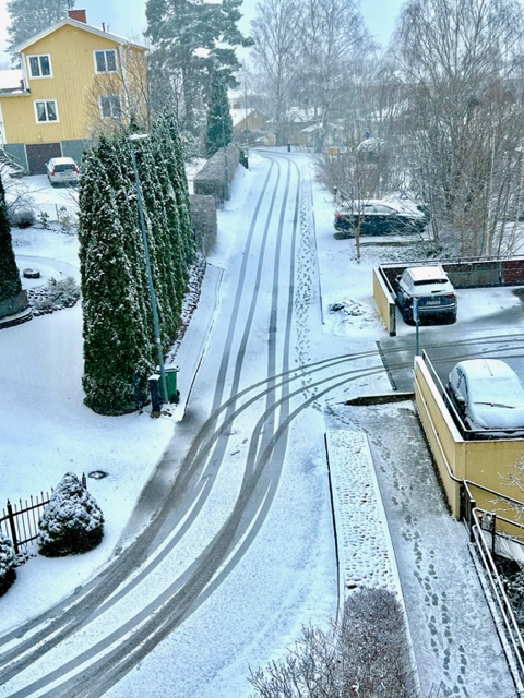 Men, en morgon vaknar jag och utanför mitt fönster är marken vit ännu en gång. Inte så tjockt lager än men det lovas mer.