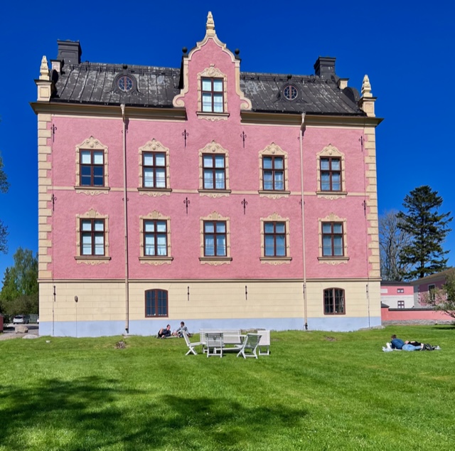 Kristi Himmelfärdsdag, klar himmel, alla träd nyutslaget ljusgröna, det var dagen vi ändå kom att ta oss an det vi försummat under alla år. Slottet byggdes på 1600-talet vid Fysingens nordöstra strand och på den tiden hade Fysingen kontakt med Mälaren och vattnen förenade slottet med Stockholm. Man kunde ha sin verksamhet i staden och sjövägen fara (ro?) ut till landet till sitt lantslott.