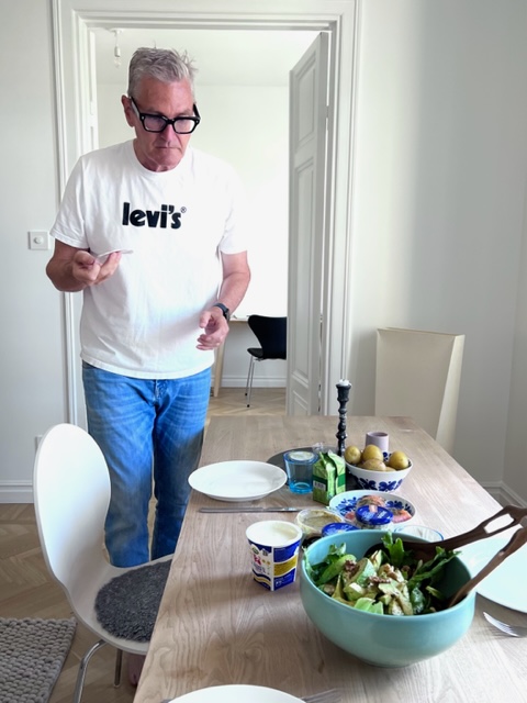 En god måltid hos Gösta och Selina på Sveavägen blev Midsommaraftonens första firande. Yoko var med på facetime från Tokyo. Vi fick sill och potatis, gravad lax och sallad och till efterrätt, mogna goda jordgubbar och glass.