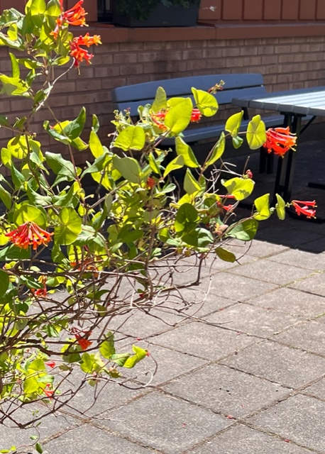 Tack Ingrid, ja det är en fin plats, som fått överleva trots alla besparingar, men den bekostades för så många år sedan och de flesta fleråriga växterna är kvar från den tiden, så det är bara sommarblommorna man har utgifter för. Sjukhuset är byggt över ett gammalt koloniområde och de djur som då hade ärende till odlingarna, letar sig nu till sjukhusträdgården och äter om något är osprutat för rådjur. En igelkott finns det också i en risig hörna. En oas av liv med färg och doft som kanske kan ge ett avbrott i timmarna mellan sjukhusväggar, hoppas Britta.
