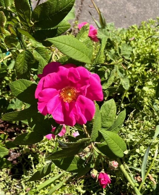 En buskros man blir förälskad i, Rosa damascena Celsiana, är en gammal ros från 1700-talet. Blommorna är ljuvligt rosa och doftar mycket. Den blommar en gång och det är nu, det gäller att hålla sig där när det sker.