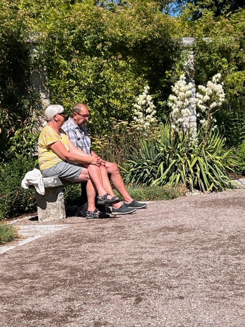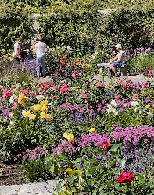Vi hann också med ett besök i DBW:s trädgård. Där var det väldigt många besökare och rosentrappan var i full blom, helt rätt tid om man ville se rosor.