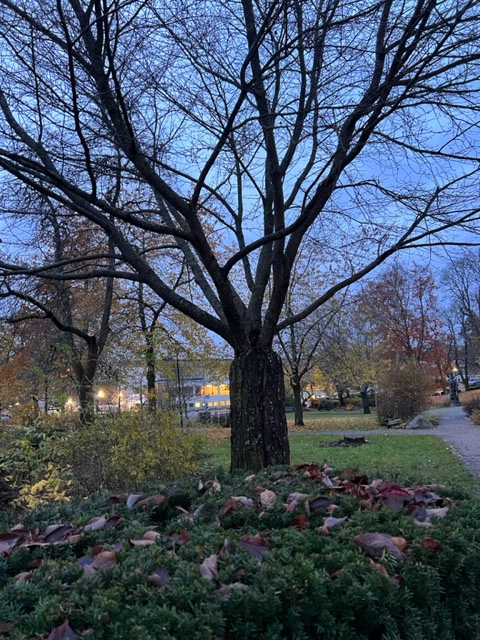 Den mörkaste årstiden är här igen, ljuset försvinner redan mitt på dagen och det gröna som omgav oss i flera månader är borta, utom några gräsmattor och mistelbusken högt upp i lönnen utanför västra Centrumentrén.