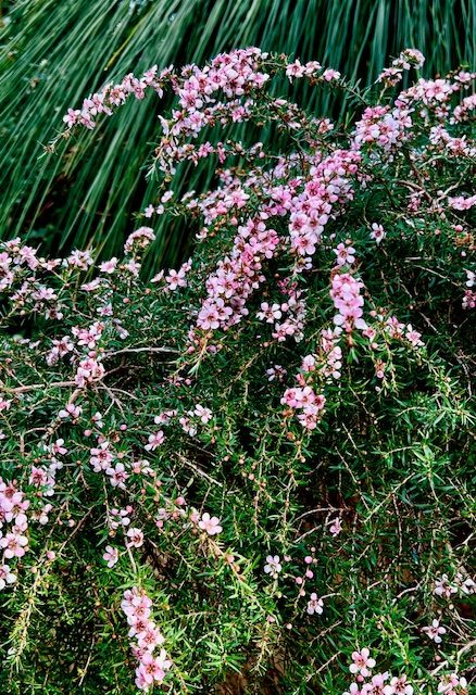 Blommar något i det Australiska rummet i dag? Ja Rosenmyrten (Leptospermum scoparium) har klätt alla sina grenar med små rosa blommor.