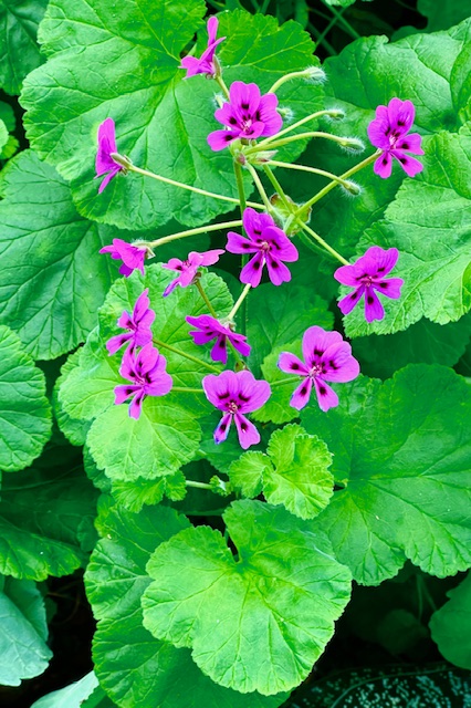 Jag tittar in i Sydafrikarummer, Pelargonum magentum med rosalila blommor blickar upp från marken och är en vild Pelargon från Sydafrika, giftig för husdjur.
