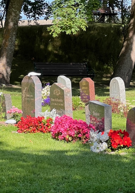 När sommarens vilda blommor har glesnat och mycket ser visset ut finns det platser där man ännu kan se frodig grönska och mycket färg. Det är på kyrkogården, där har blommorna fått vatten och svarar med färgkaskader.