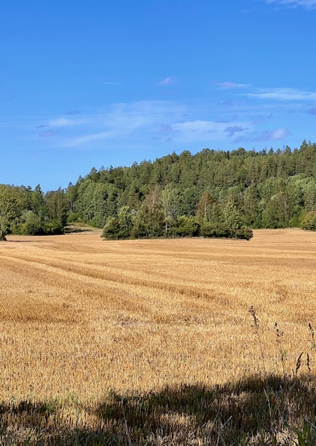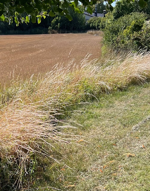Skymningen kommer tidigare varje kväll och man behöver tända lampor igen, grönskan ute är mindre saftig,. sädesfälten är gula och de utblommade gräsen är flera än förr och vajar genomlysta utmed gångvägarna för vindpustar och sensommarblommornas tid är nu.