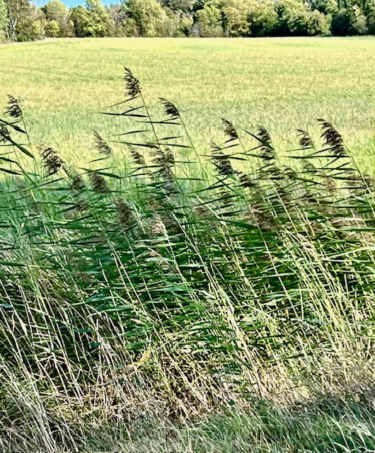 Vass är också ett gräs, blommar sent och kan bli 4 meter högt och med lika djupa rötter neråt. Har använts till taktäckning och husmaterial, eldning och föda, roten kan kokas och ätas. Den har varit vår följeslagare från tiden innan vi hade halm och den dyker upp i diken och där fukten står kvar.