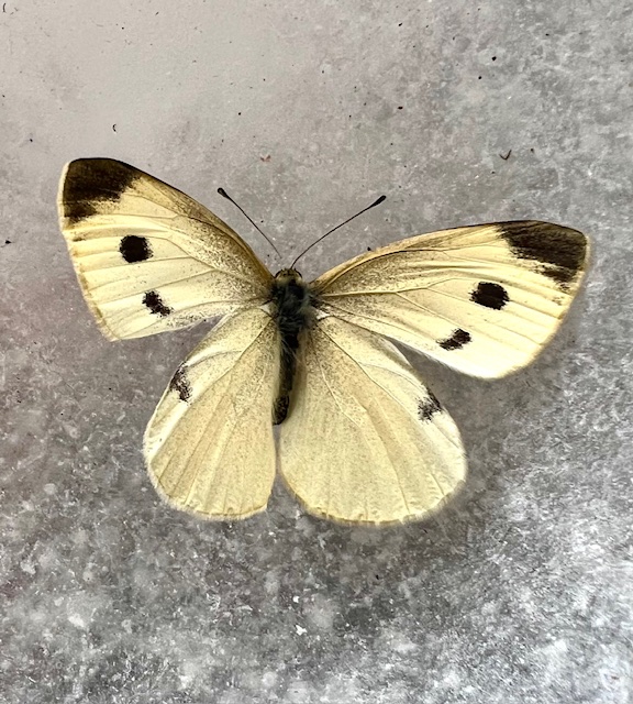 En kålfjäril hade förirrat sig in i lägenheten på 4:e våningen och jag lyckades lyfta ut den i ett dricksglas, den gjorde en stor sväng i luften och försvann, nästa morgon låg en annan kålfjäril helt insomnad på fönsterbrädan, hade de varit två från början?