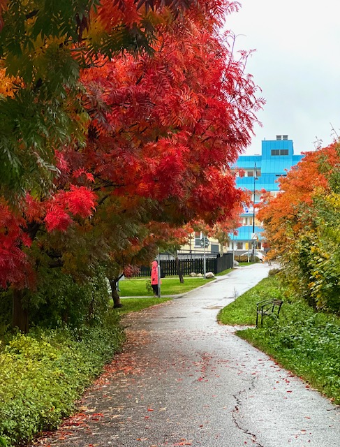 Gångvägen mot Dragonvägen en eftermiddag då regnet pausade en stund.
