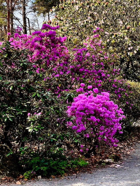 Överst i Rhododendrondalen lyser de tidiga buskarna starkt lila.