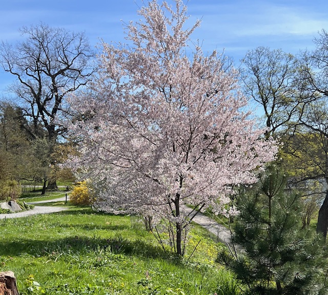 24/4-25 Bergianska trädgården har nu fått Universitetet som ensam ägare och som vän till trädgården hoppas jag att den ska få lugn och arbetsro. Den mest påtagliga förändringen märks i E.Andersons växthus där serveringen av drycker med tilltugg har upphört och ersatts med en helautomatisk kaffeapparat. Gick en runda i den vårblommande trädgården efter ett besök hos grannen tandläkaren.