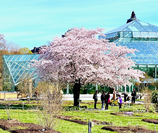 Det stora Tokyo-körsbärsträdet utanför E.Andersons växthus drar många beundrare.
