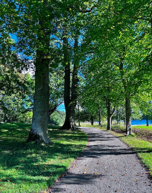 Då jag förra hösten gick omkring i den stora lindplanteringen i Rosersbergs slottspark bestämde jag mig för att jag måste se när de gamla träden slår ut sina nya ljusgröna löv om våren. Det blev inte så, det kom att bli september igen , nästan prick ett år efter förra besöket. Den fullt utslagna grönskan på sommaren är så tät och skuggande och det svalkar om solen gassar men när sommaren går mot höst blir det kallt under träden och man går gärna ut i de solbelysta områdena.