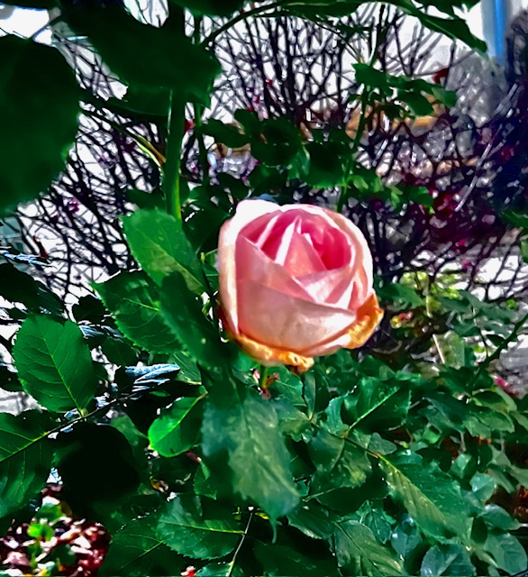 Inne på gården har den ena av rosorna, Clair renaissans, kommit med två sena blommor, trodde inte att de skulle hinna slå ut.
