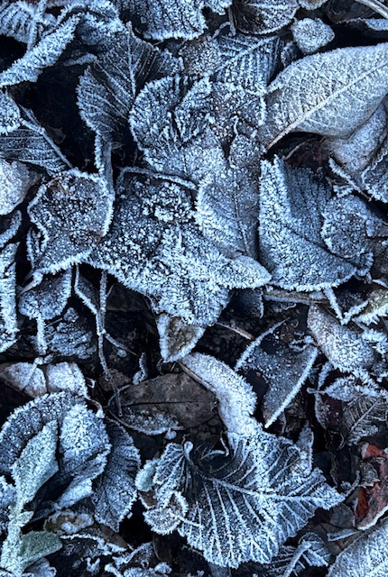 Löven har en av sina grannaste stunder förutom vår, sommar och höst, när rimfrosten visar bladens nerver och konturer.