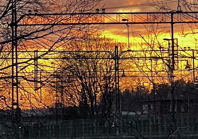 Klockan 3 på eftermiddagen, visar sig solen i en rand vid solnedgången, den har inte slocknat bakom molnen.