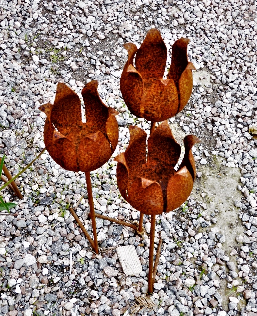 Rödrostiga ljushållare för trädgården.