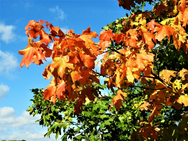 Några meter härifrån står en lönn i brinnande färger