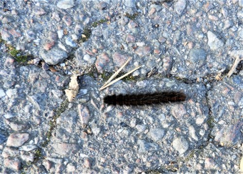 En larv gick tillräckligt långsamt för att jag skulle hinna fånga den. Vägen ledde till slut neråt och gick under motorvägen till Skälbyområdet och en gren gick brant uppåt och jag kom in på den väg jag letat efter. Nu blev det vandring söderut igen och med häftig stigning.