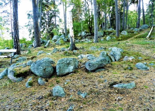 I åsens slänt mot norr låg stenarna, stora stenar och ordnade stenar, i ring och i stor halvcirkel, block i mängder, när jag äntligen återsåg platsen, var jag så trött att jag inte orkade ta in allt.