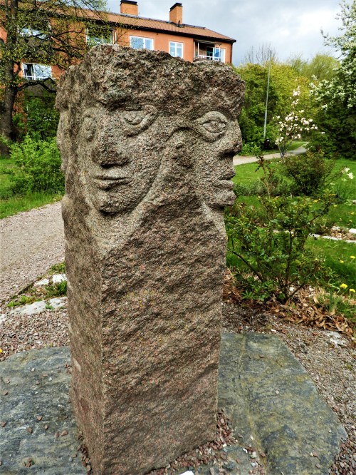 Hälsade på den unge Strindberg, som spejar ut över skärgården från en bergknalle ovanför ateljén, han ser väl mest universitetets tillbyggnader som just nu de är de högsta i omgivningen. Mittemot är en ännu högre utsiktspunkt från ett före detta luftvärnsfort som omvandlats till grillplats. Stigen dit delas med vägen till en låst grind i ett högt nätstängsel och därinnanför finns Duvslaget, som inte kan ses annat än på avstånd hängande på översta kanten av berget. Så många gånger har jag försök att se vad som finns innanför och läst att brevduveklubben är insomnad men stått vid nätet och sett tecken på att någon ändå fortsätter att titta till fåglarna.