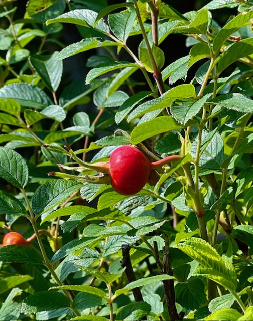 Samtidigt är nyponen från den tidiga blomningen redan röda, inte mjuka och saftiga, men färgen är där. Vad fort det gick!